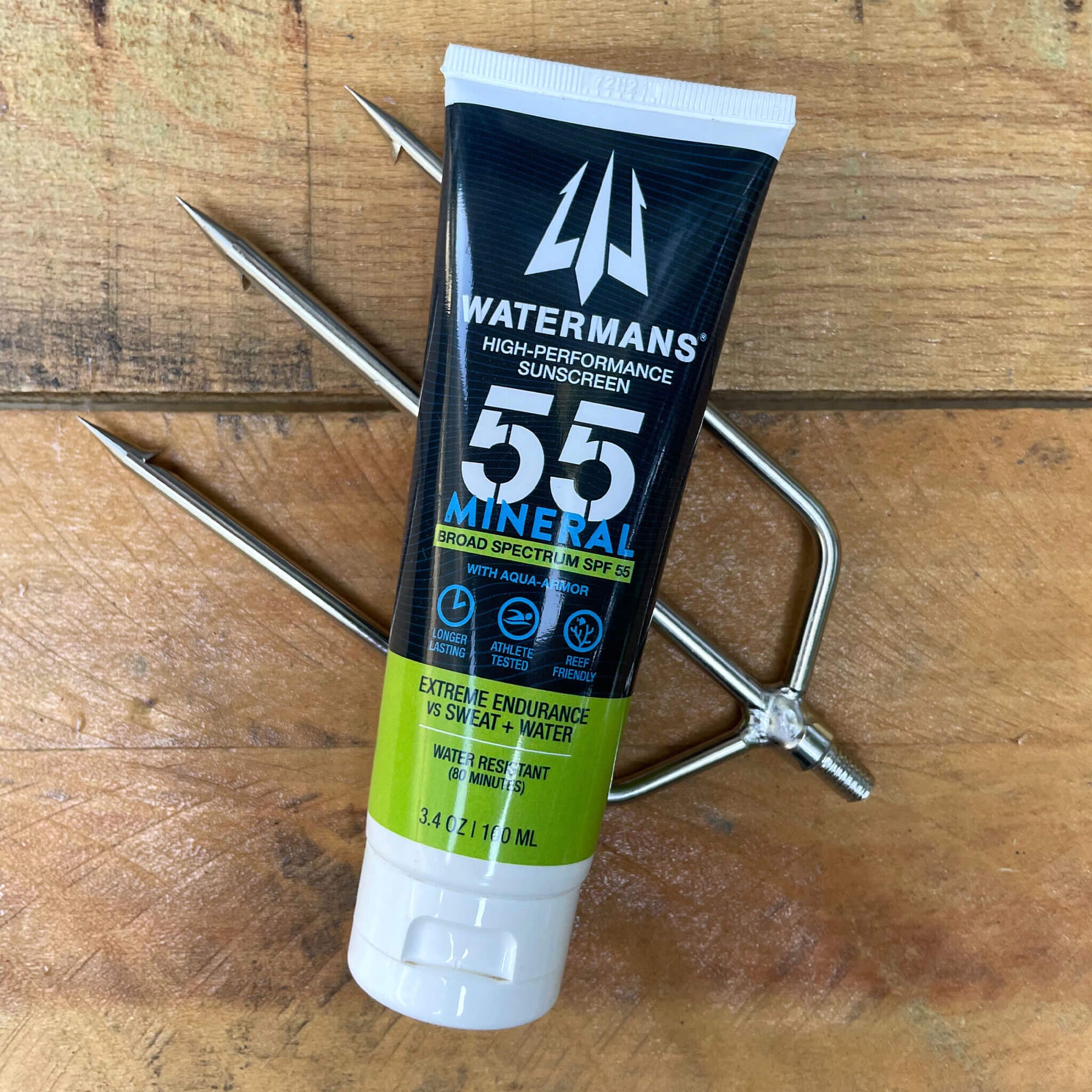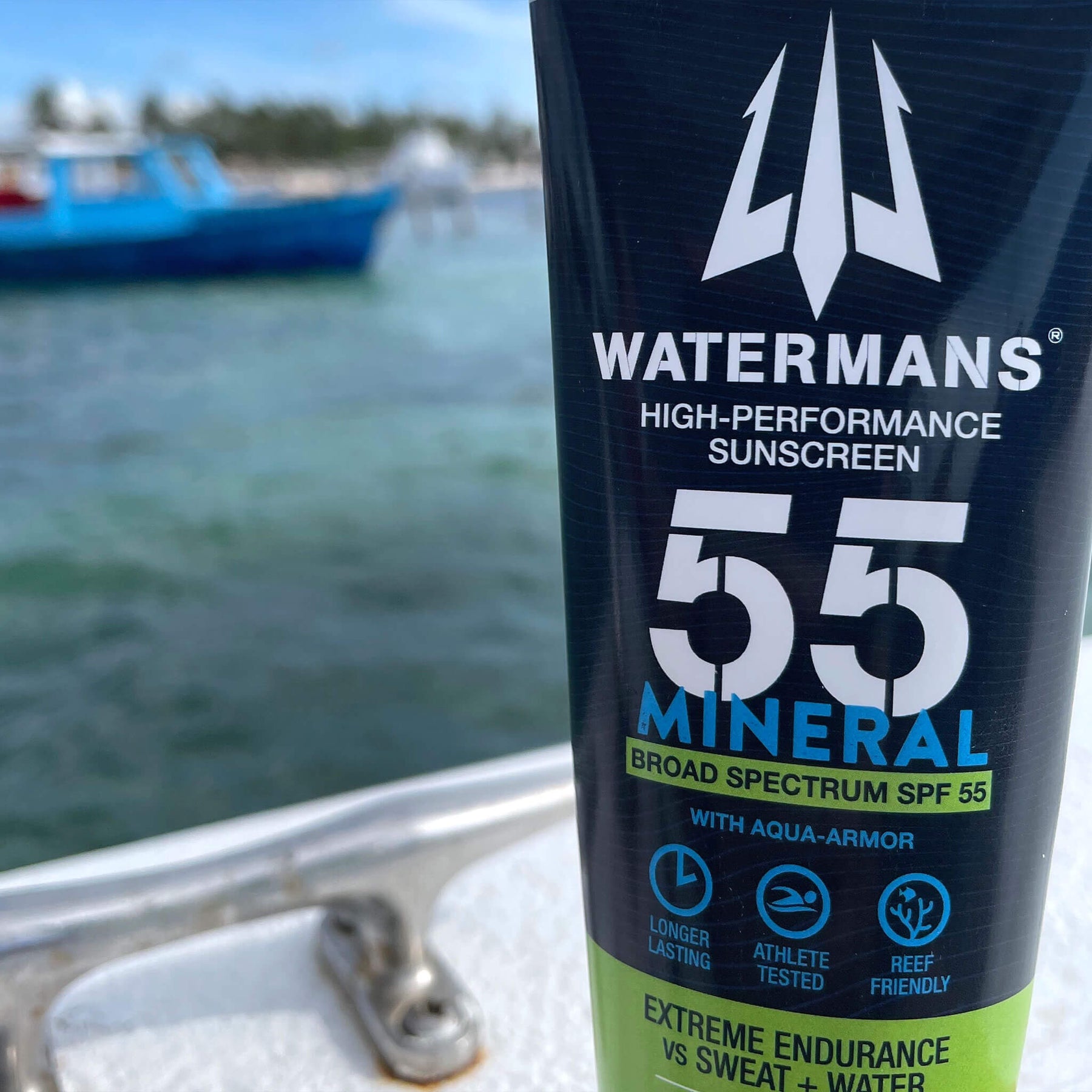 The Athlete's Choice! Watermans® High-Performance Sunscreen has been tested 8 hours for exceptional water and sweat resistance.  Reef-Friendly. Fragrance-Free. Oxybenzone-Free. Watermans® is purpose-built to work as hard as you play!